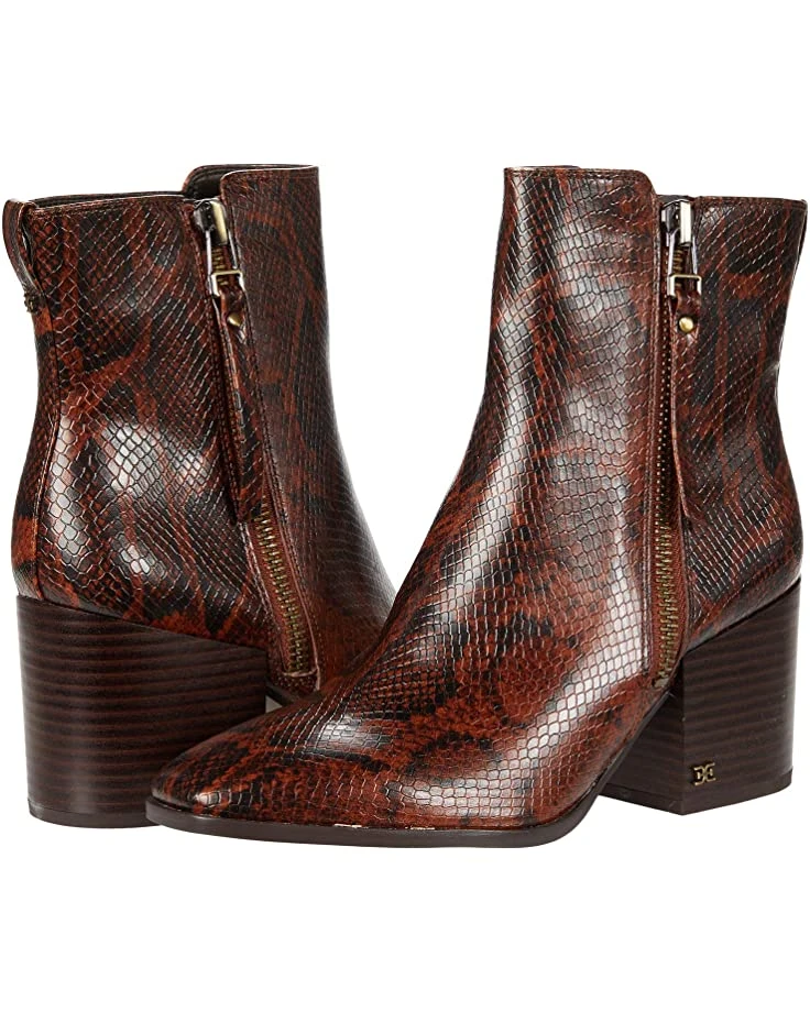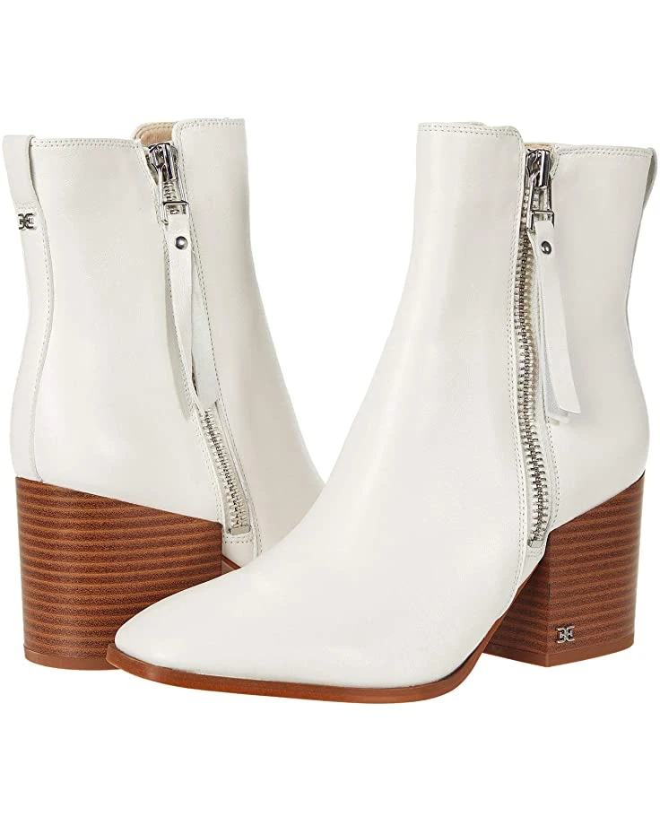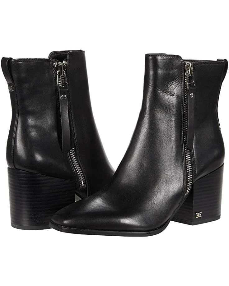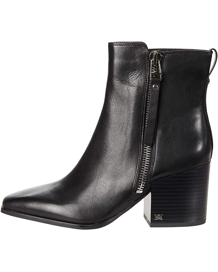 - Your style stacks up just right wearing the Sam Edelman® Carlysle boot featuring a leather exterior, side zip closure, almond-toe silhouette, and ankle pull-tab.
