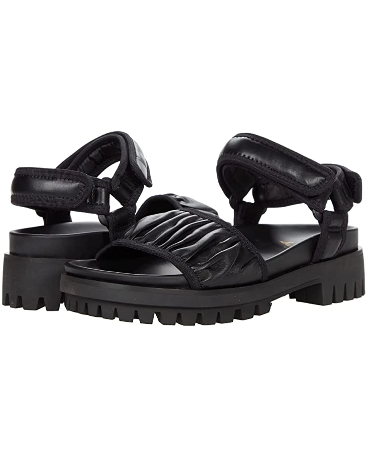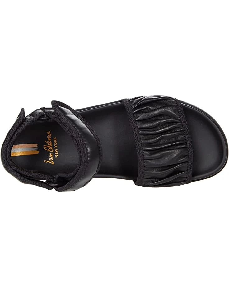 - Welcome the warmer weather in style wearing the Sam Edelman® Edythe featuring a classic slip-on style sandal this time with elastic pleated uppers and hook-and-loop closures at ankles constructed with a well bedded footbed so all day wear is a breeze!