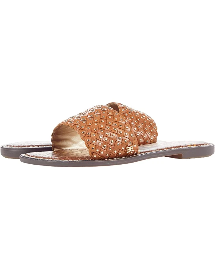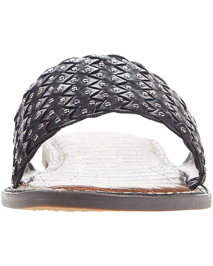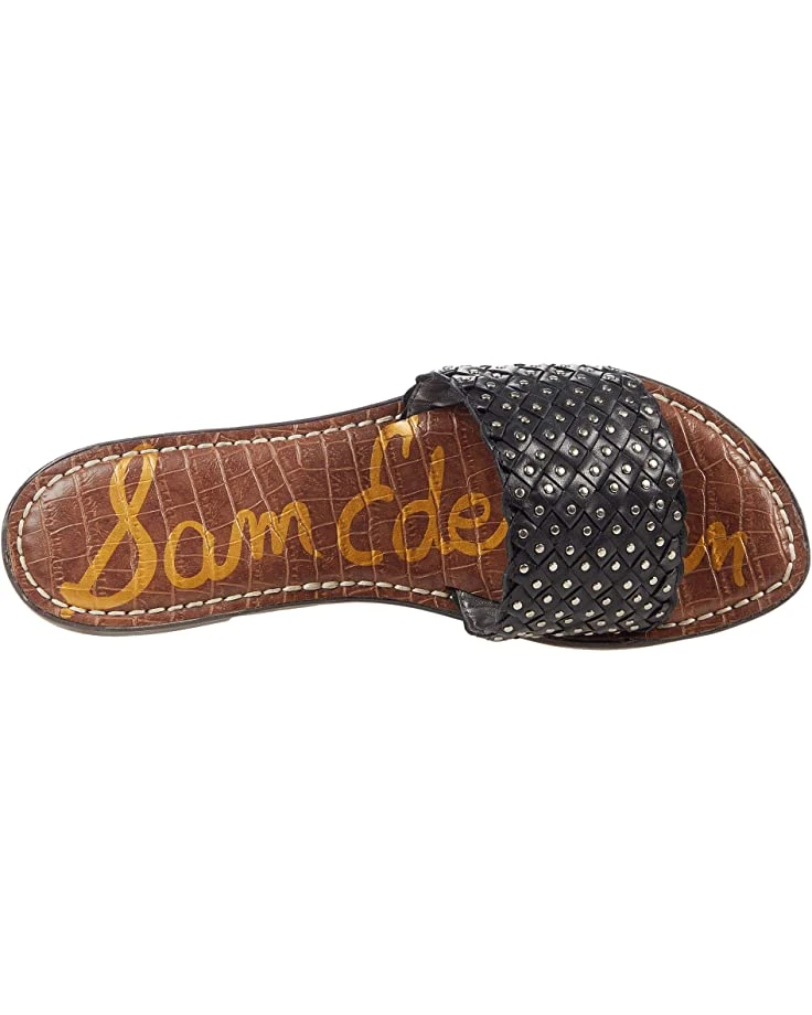 - Sam Edelman® Geraldine slip-on sandals feature a woven, checkerboard pattern that is accented with an intricate diamante crystal arrangement. A traditional look, with soft leather and a touch of sparkle, is easy to match and wear to any occasion.