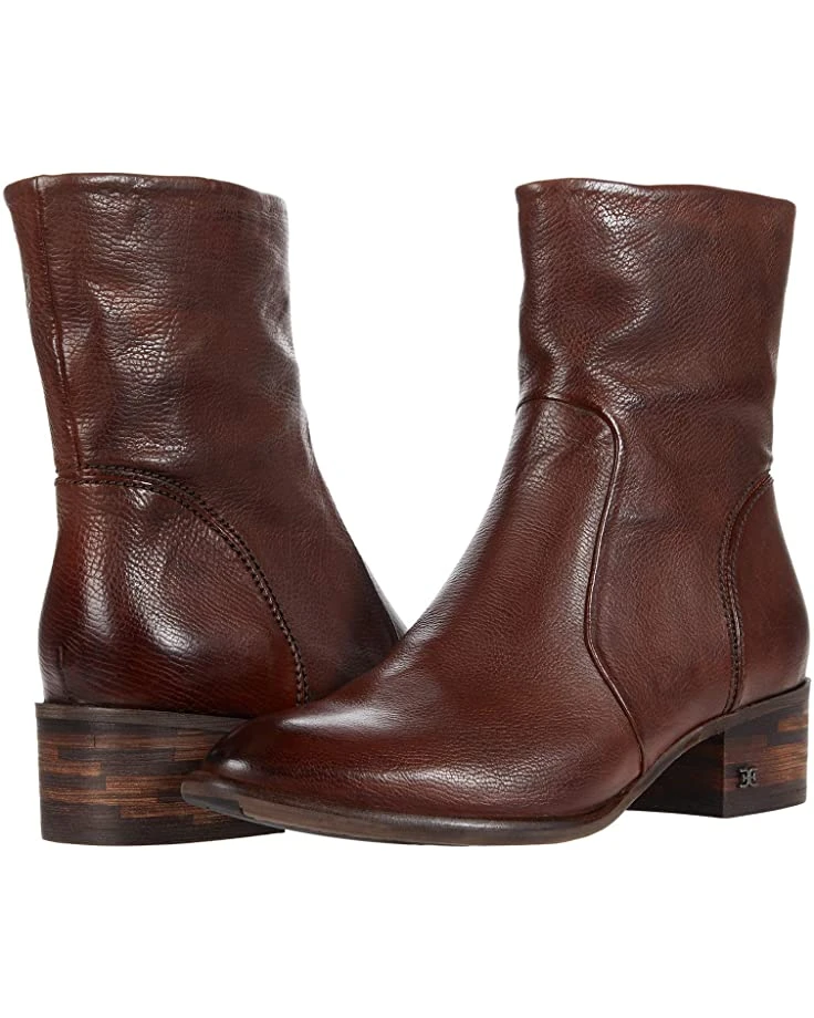 - Step with purpose in the distressed leather Sam Edelman® Hilary ankle boots featuring a side zip closure, textile lining with matching cushioned footbed.