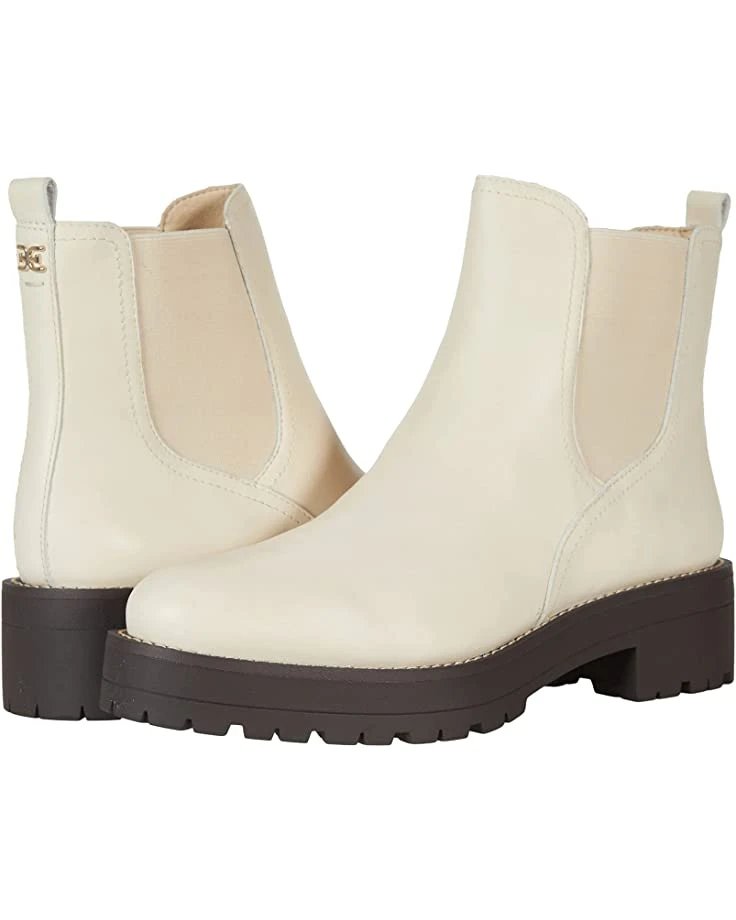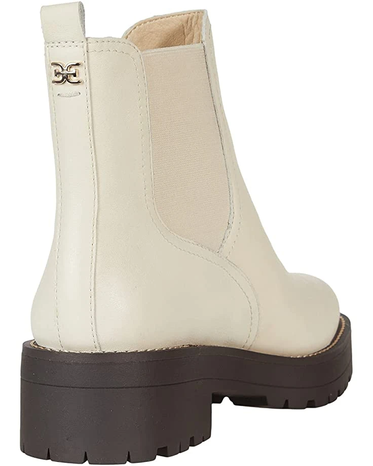 - A subtly stylish boot that pairs easily with your favorite denim, the Sam Edelman® Justina boots feature elastic goring and a pull tab at the heel for easy on, and a thick chunky outsole for a rugged look.