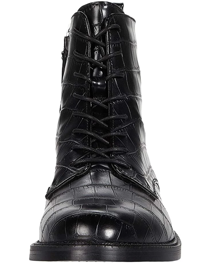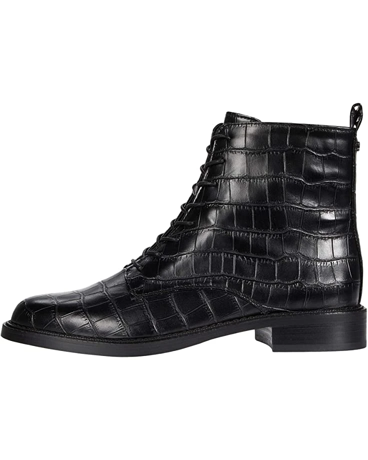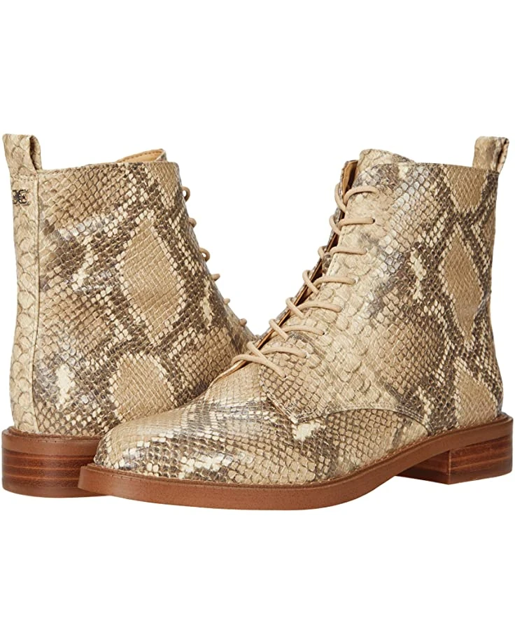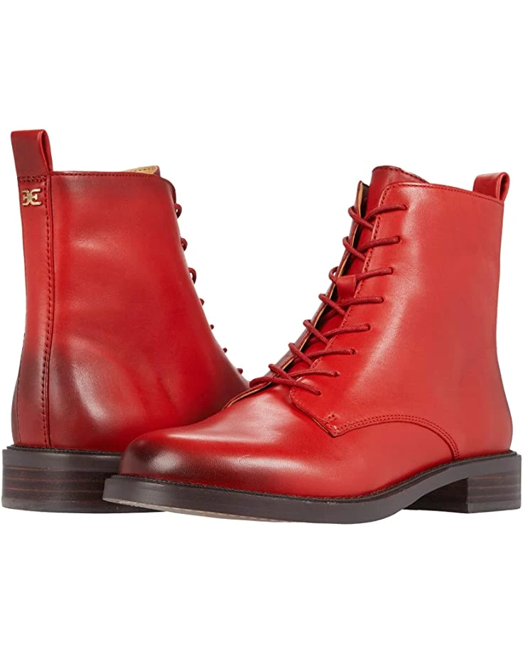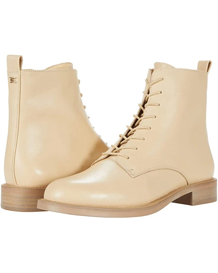 - The Sam Edelman® Nina boot features a leather and textile exterior, lace-up and side zip closure, rounded-toe silhouette, and ankle pull-tab.
